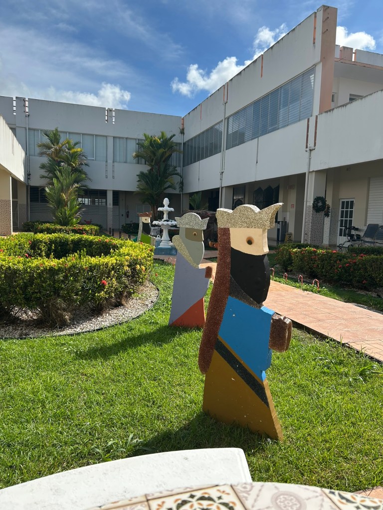 Si tengo que dejar saber porque esta foto, además del día, es que encontré estos adornos de los reyes bastante interesante y me dio la impresión que llena el vacío en esa parte del patio, y decidí tomarla en un ángulo que se vea al frente en una perspectiva diagonal.